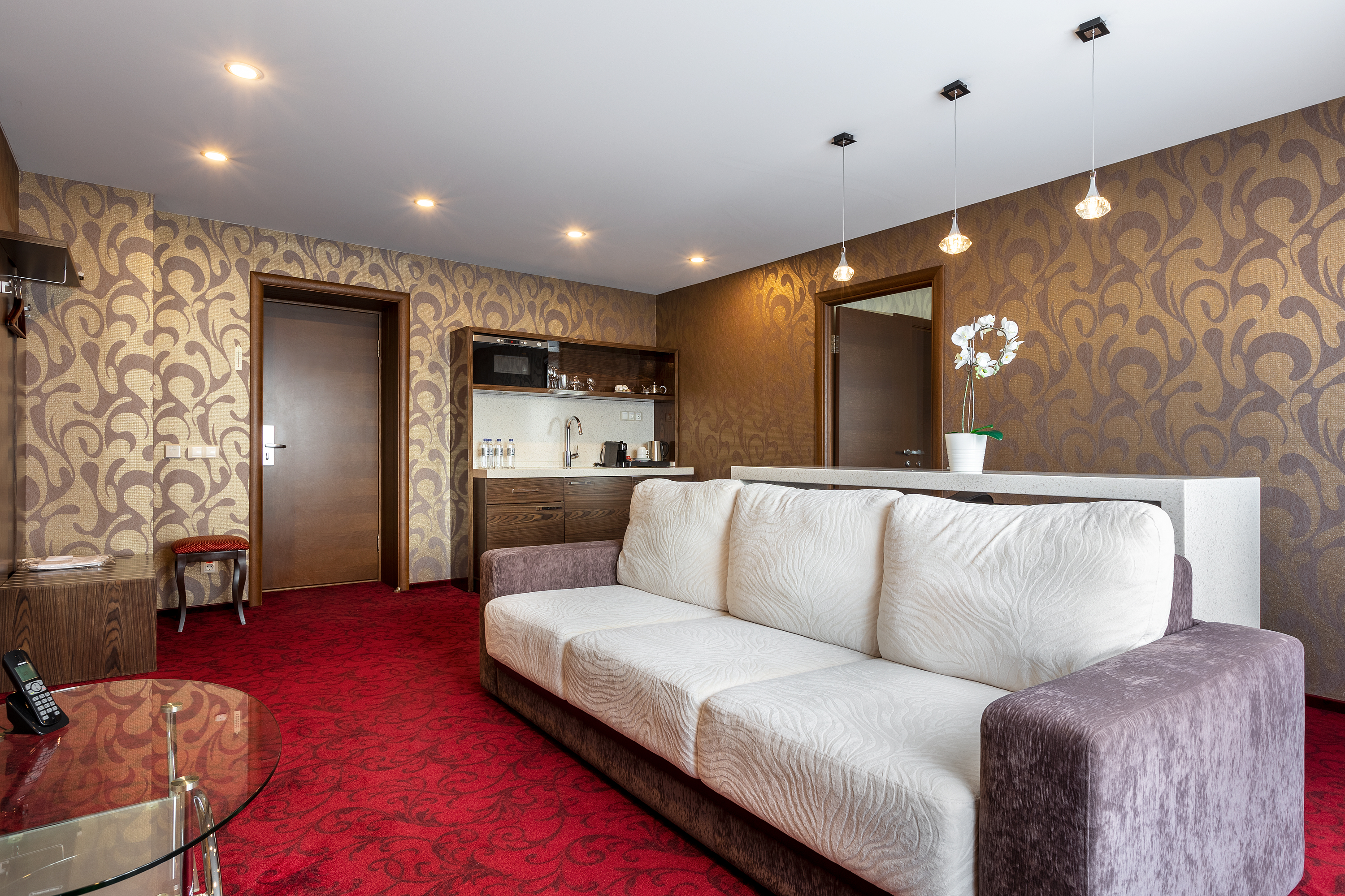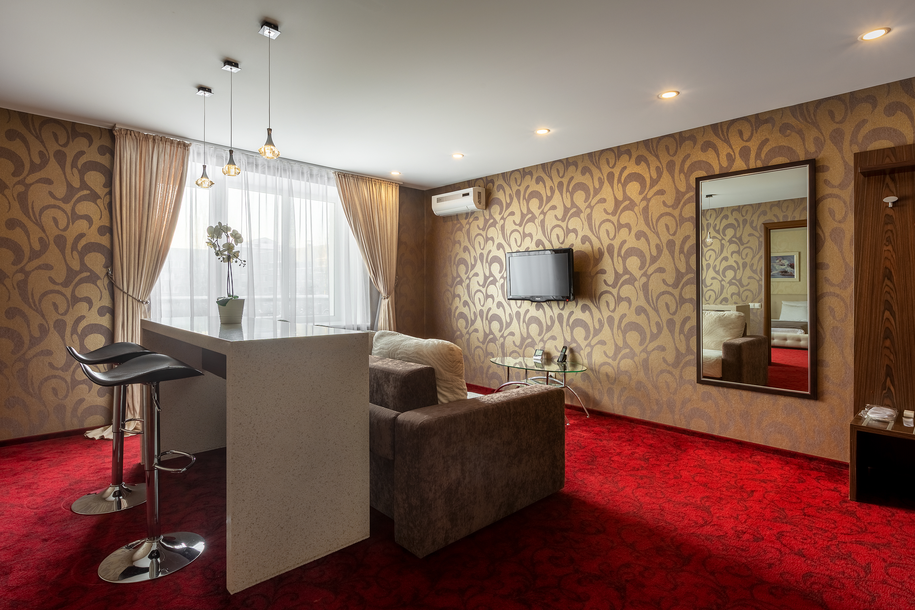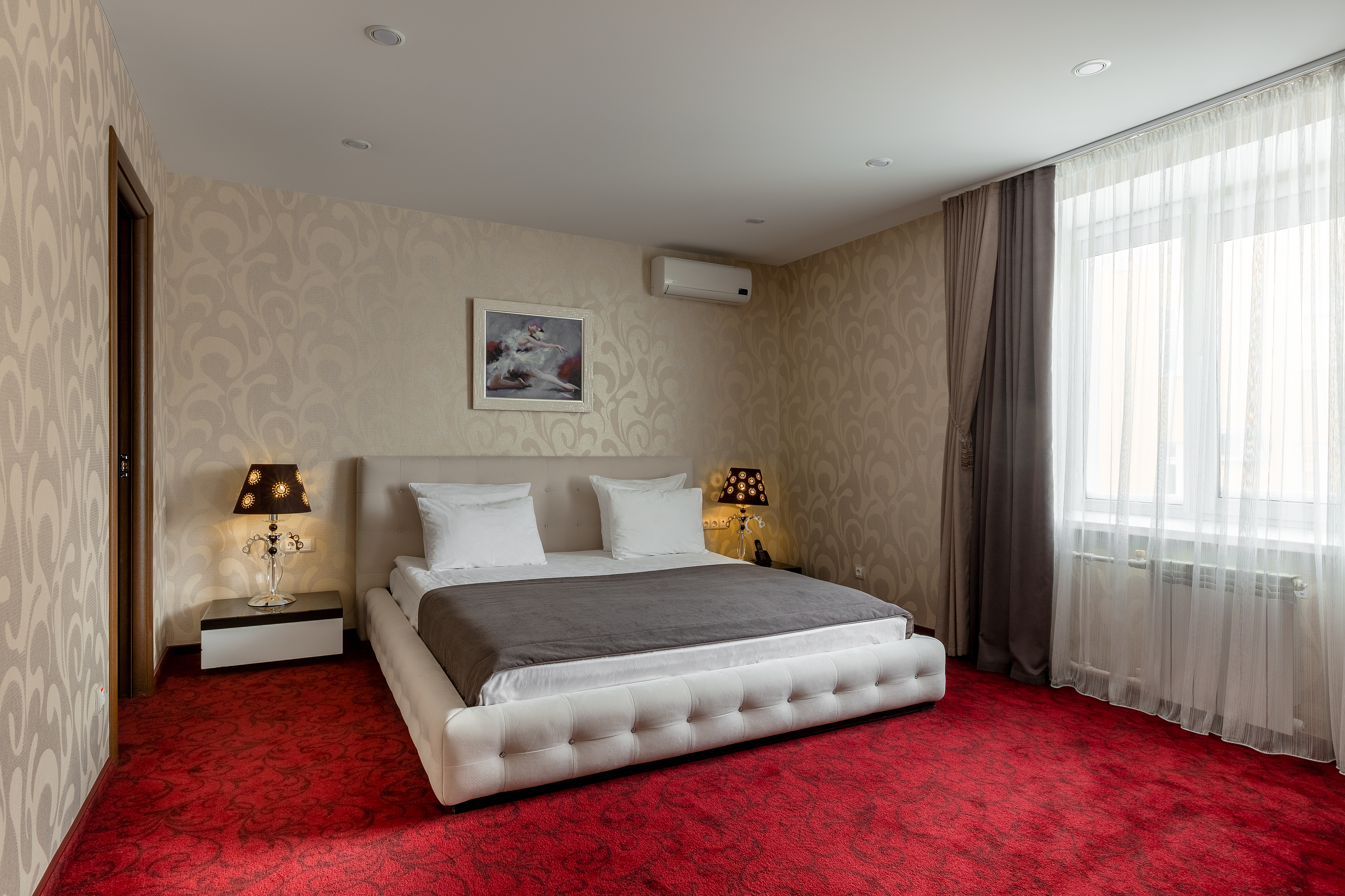 Номера категории ГРАНД-ЛЮКС - впечатляют своей элегантностью и простотой. Состоят из просторной гостиной, уютной спальни и отдельным санузлом. Номера идеально подойдут для тех, кто ценит сочетание комфорта и уюта как в деловой поездке, так и во время отдыха. Номера обустроены так, что бы подарить полноценный отдых после насыщенного дня, проведенного в городе, а оригинальный дизайн создает красочный образ каждому номеру и дарит частичку тепла всех, кто старается сделать пребывание гостей максимально комфортным.
